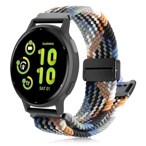 ZoRoll 20mm Bracelet pour Garmin Vivoactive 5/vívomove Trend/Venu Sq 2/Venu Sq 2 Music/Venu 2 Plus/Venu Sq, Tressée Nylon Bracelet pour Garmin Venu/Forerunner 245/645/vivomove 3 - Coloré