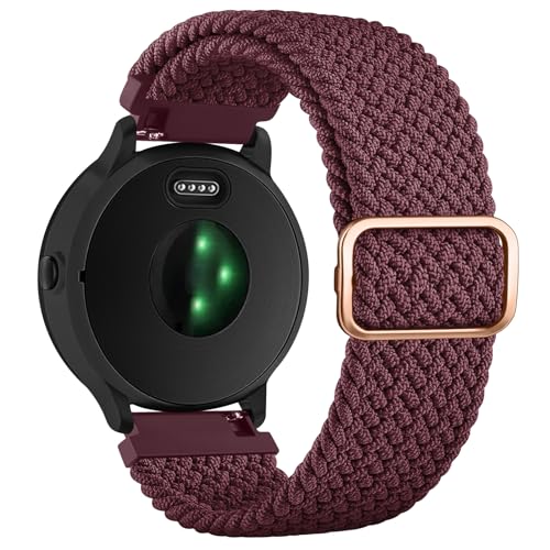 Wanme Bracelet Compatible pour Garmin Vivoactive 5/Garmin Venu/Venu Sq 2/Venu Sq/Venu 2 Plus/Venu Sq Music, Élastique en Nylon Tressé Bracelet de Remplacement pour Garmin Vivoactive 3, Vin Rough