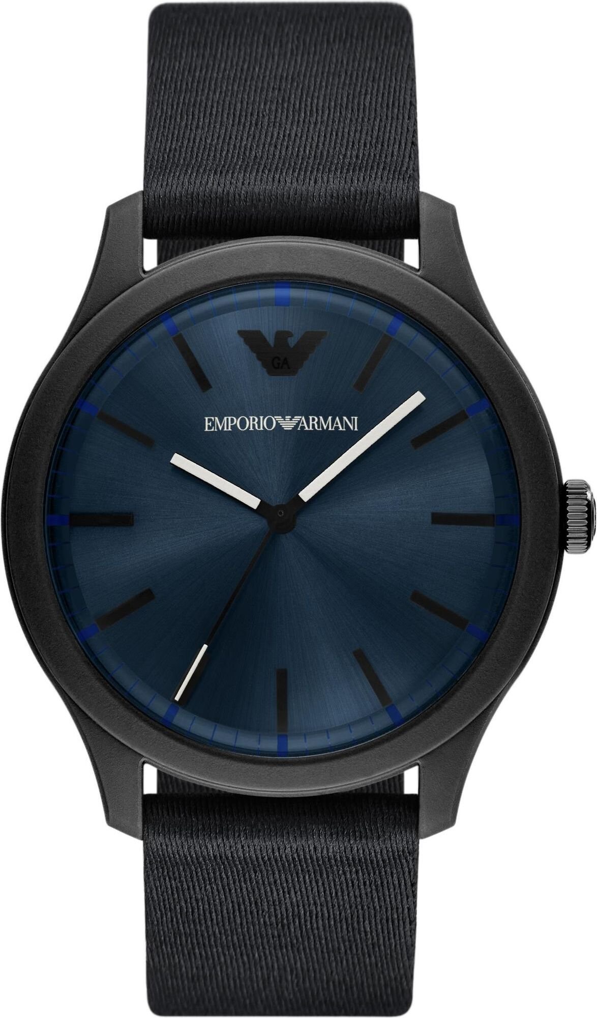 Emporio Armani Montre pour homme, mouvement à trois aiguilles avec date, boîtier en acier inoxydable noir de 46 mm avec bracelet en polyuréthane, AR11440