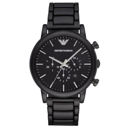 Emporio Armani Montre pour homme, mouvement chronographe à quartz, boîtier en acier inoxydable noir de 46 mm avec bracelet en acier inoxydable, AR1895