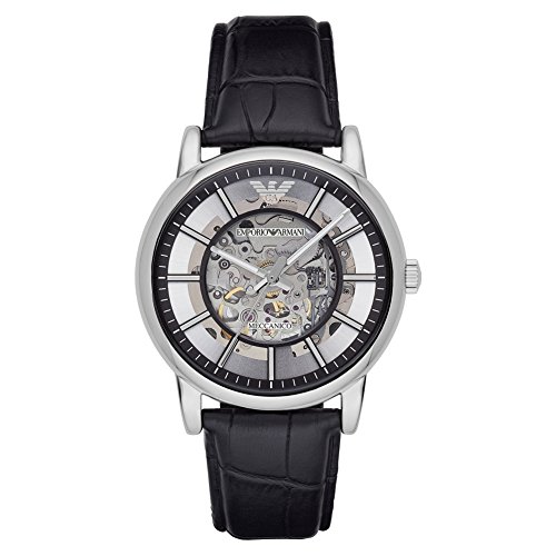 Emporio Armani Montre pour homme, mouvement automatique, boîtier en acier inoxydable argenté de 43 mm avec bracelet en cuir, AR1981