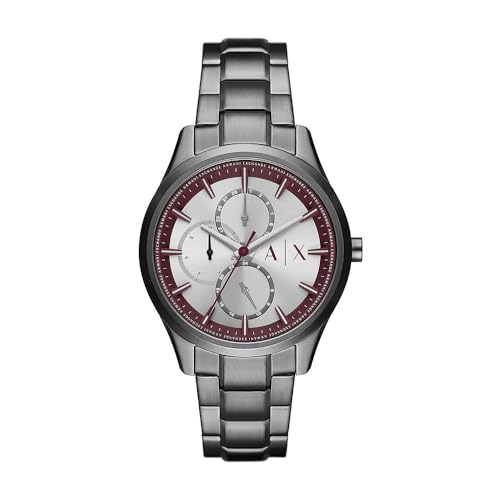 Armani Exchange Montre pour Homme, Mouvement chronographe et boîtier de 42 mm avec Bracelet en Acier Inoxydable, Cuir ou Silicone, Gris et Marron, 42MM