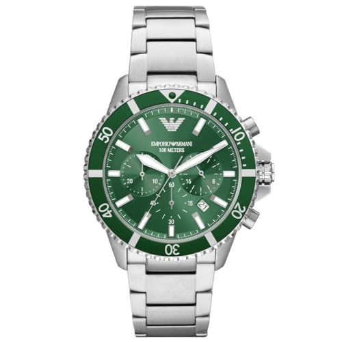 Emporio Armani Montre pour homme, mouvement chronographe, boîtier en acier inoxydable argenté de 43 mm avec bracelet en acier inoxydable, AR11360
