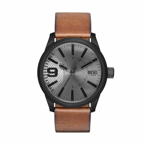 Diesel Montre pour homme, Rasp, mouvement à trois aiguilles, boîtier en acier inoxydable noir de 46 mm avec bracelet en cuir, DZ1764