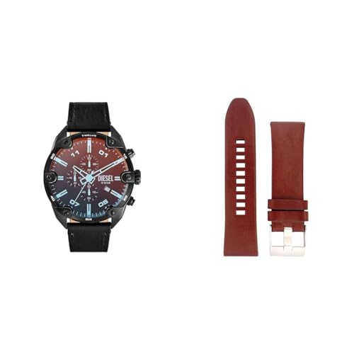 Diesel Montre pour Homme Mega Chief, Mouvement chronographe, boîtier en Acier Inoxydable Noir de 51 mm avec Bracelet en Cuir, DZ4343 pour Homme Montre avec Bracelet en Cuir 347728