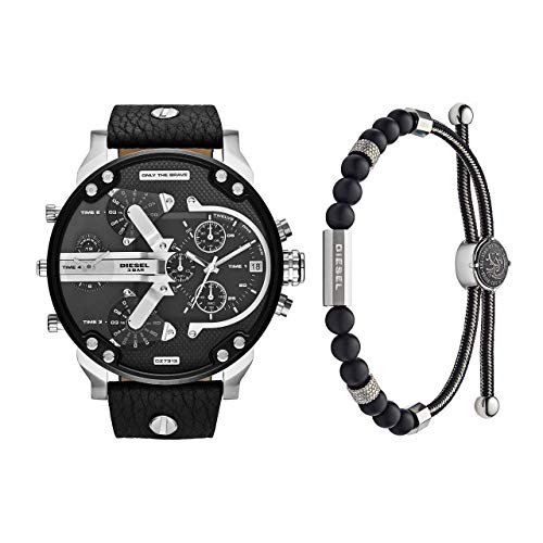 Diesel Homme Master Chief Noir Cuir Montre and Pierres Semi-Précieuses Bracelet, Coffret
