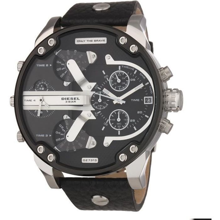 DIESEL Montre bracelet Homme - Chronographe - Quartz - Analogique - Cuir - Noir