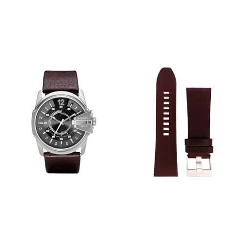 Diesel Montre pour homme Master Chief, mouvement à trois aiguilles, boîtier en acier inoxydable de 46 mm avec bracelet en cuir, DZ1206