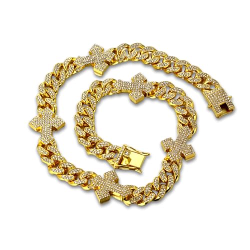 HALUKAKAH Chaîne Homme Diamant Or avec Croix,Plaqué Or 18k Full Iced Out 12MM Chaîne Miami à Maillons Cubains Collier & Bracelet,Diamants de Laboratoire Sertis Griffe,Cadeau pour Mari,Ami,Fils