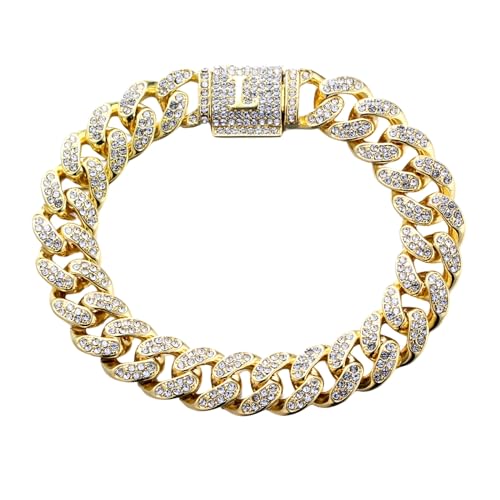 Halukakah Plus de 400 Diamants Plaqué Or Véritable 18K Bracelet Chaîne à Maillons Cubains pour Homme et Femme, Fermoir Lettre Bulle L Initiale 3D - Complet avec Boîte Cadeau - Idée Cadeau pour Proches