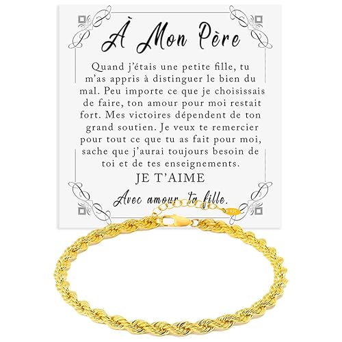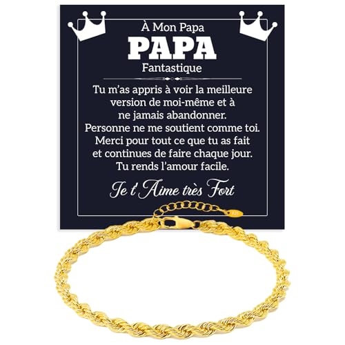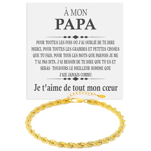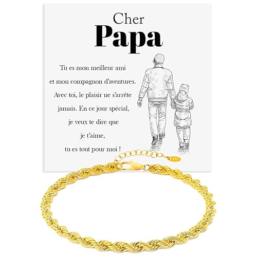 Bracelet Homme pour Papa Corde Finition Or 18k en Argent Sterling 925 Cadeau anniversaire Noël Cadeaux pour lui Fête des Pères - Coffret avec DÉDICACE inclus (papa corde d'or 1)