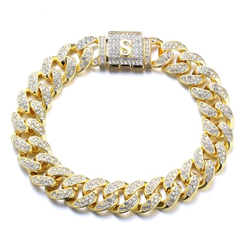 Halukakah Plus de 400 Diamants Plaqué Or Véritable 18K Bracelet Chaîne à Maillons Cubains pour Homme et Femme, Fermoir Lettre Bulle S Initiale 3D - Complet avec Boîte Cadeau - Idée Cadeau pour Proches