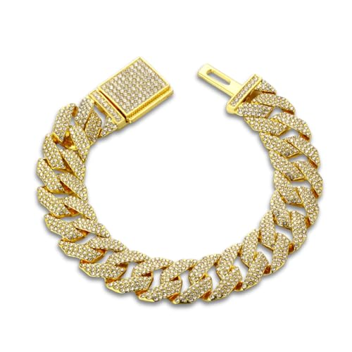 HALUKAKAH Chaîne Homme Diamant Or, Plaqué Or 18k Full Iced Out 15MM Chaîne Miami à Maillons Cubains Bracelet 20cm, Diamants de Laboratoire Sertis Griffe, Cadeau pour Mari, Ami, Fils