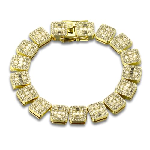 HALUKAKAH Chaîne en Or Homme Diamant Carré Groupé,Plaqué Or 18k Bracelet 20cm Chaîne Miami 12MM Full Iced Out,Diamants de Laboratoire Sertis Griffe,Cadeau pour Mari,Petit Ami,Fils,Ami
