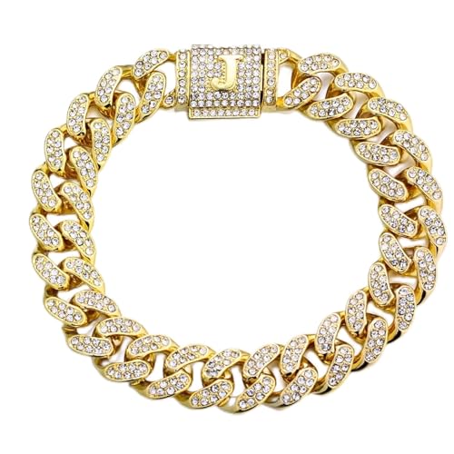 Halukakah Plus de 400 Diamants Plaqué Or Véritable 18K Bracelet Chaîne à Maillons Cubains pour Homme et Femme, Fermoir Lettre Bulle J Initiale 3D - Complet avec Boîte Cadeau - Idée Cadeau pour Proches