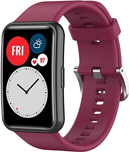 Wownadu Bracelet Compatible pour Huawei Watch Fit Bracelets Rechange Femme Homme Sport Strap,Accessoires Remplacement Silicone Band Sangria (Pas de Montre)
