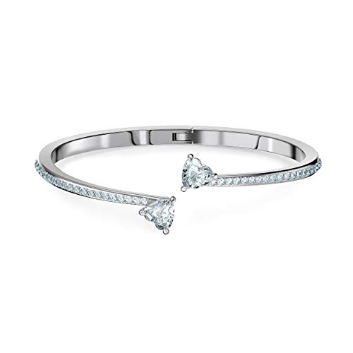 Swarovski Bracelet-jonc de la collection Mesmera, pavé de cristaux incolores et deux Zirconia taille cœur, placage ton or, taille L