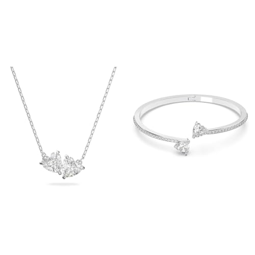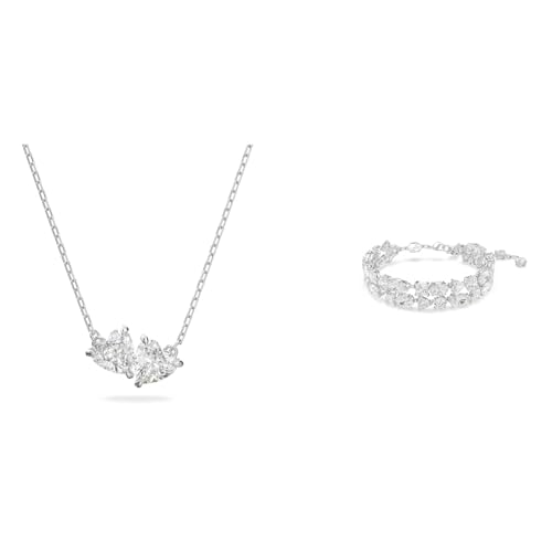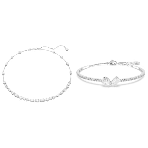 Swarovski Parure Mesmera composée de clous d'oreilles, d'un collier, et d'un bracelet au motif éparpillé de cristaux blancs, en métal rhodié