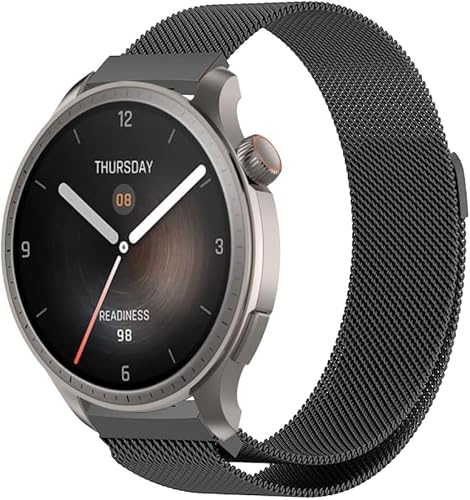 PaceBid 22mm Métal Bracelet Compatible avec Amazfit Balance, Femmes Hommes Métal Acier Inoxydable Tissé en Maille Ajustable Magnétique Bracelet de Montre pour Amazfit Balance 2 - Noir
