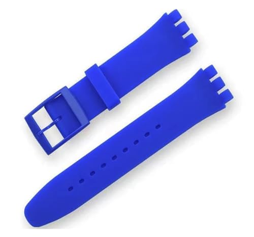 LKQASD 16 mm 17 mm 19 mm 20 mm Bracelet en silicone souple Bracelet de montre coloré compatible avec le bracelet de montre Swatch Accessoires de montres de remplacement avec outil ( Color : Blue , Siz