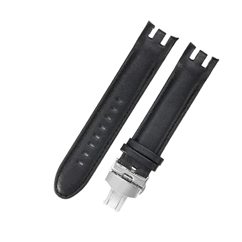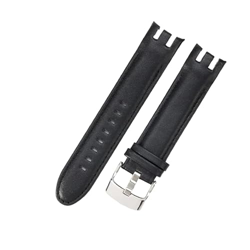 REFKIT Bracelet en cuir véritable 17mm for Bracelet de montre Swatch hommes femmes Bracelet accessoires de Bracelet de montre(Black)