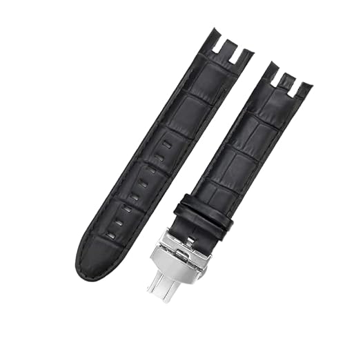 OLXIYOC Bracelet pour montre Swatch en cuir de vachette avec motif alligator et fermoir en acier inoxydable, 19mm, Silicone, Pas de pierre précieuse
