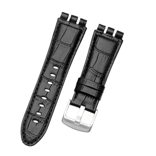 HMFANG Compatible avec Le Bracelet De Montre Swatch 23mm Nouveau Bracelet De Montre en Cuir Véritable Souple Et Imperméable for Hommes De Haute Qualité(A Black_23mm Silver Clasp)