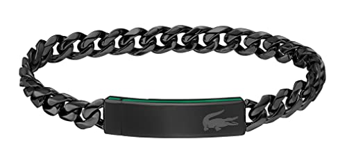 Lacoste Bracelet en Chaîne pour Homme Collection BASELINE en Acier Inoxydable Noir avec une Plaque Gravée - 2040082