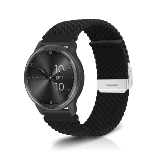 NicMool 20MM Nylon Bracelet pour Garmin Approach S50/S44/Forerunner 570 42mm/165/165 Music, Hommes Femmes Bracelet Élastique Tressée pour Garmin Vivoactive 6/5/vívomove Trend - Noir