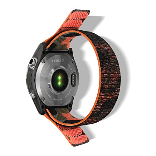 RoYiio Nylon Bracelet pour Garmin Quatix 8 51mm/Quatix 7X/6X/Tactix 8 51mm/Tactix 7Pro/Fenix8 51 mm/Fenix 7X Pro/Fēnix 6X Pro Bracelet Respirant pour Enduro 3/2 (QuickFit 26mm, Camouflage Orange)