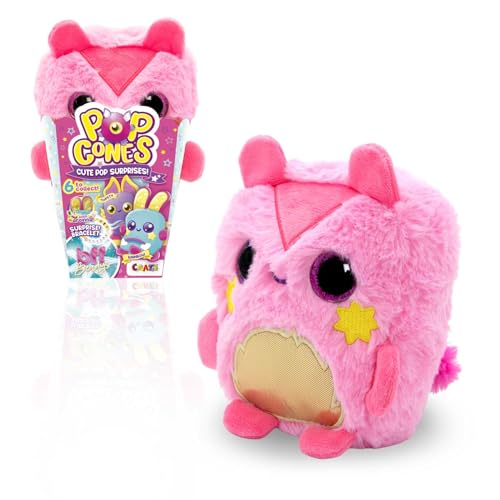 CRAZE Plush Pop Cones Sugar – Peluche Parfum Popcorn avec Bracelet BFF – Jouet Surprise en boîte Popcorn – pour Enfants dès 3 Ans