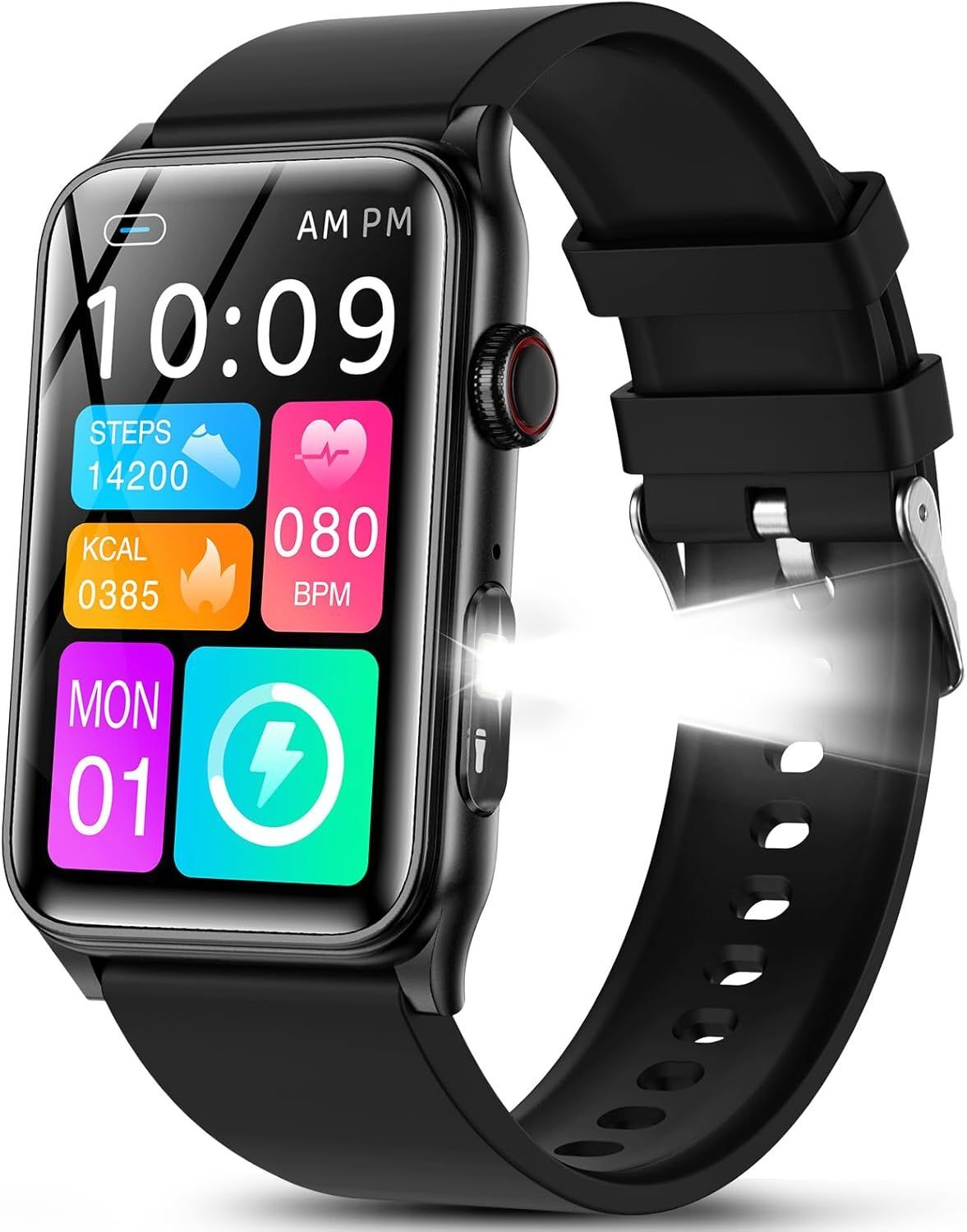 Marsyu 2025 Montre Connectée Homme avec Appel Bluetooth,1,57" Montre Intelligent avec Lampe de Poche LED,120+ Modes Sportifs Moniteur de Sommeil Podometre Bracelet Intelligente pour Android iOS