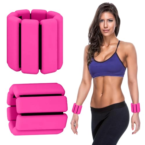 TOPESCT Lot de 2 poids de poignet réglables (0,5 kg chacun) | Bracelet de poids portable pour poignet et cheville pour yoga, danse, barre, pilates, cardio, aérobic, marche (rose) (0,9 kg chacun, rose)