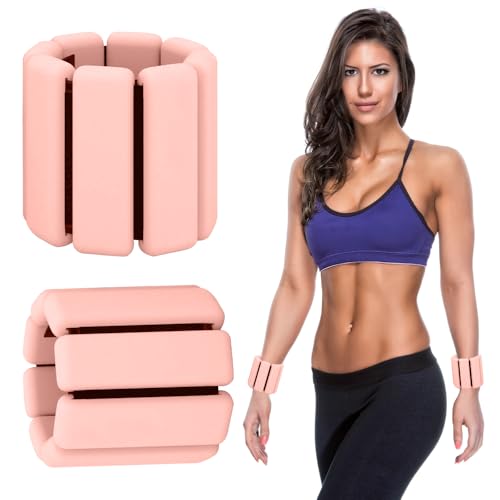 Poids Poignet - Bracelet Lesté Ajustable - Lot de 2 (Paire de 1 kg, 0,5 kg chacun) | Bracelet Poids en Silicone pour Femmes | Yoga, Pilates, Danse, Barre, Natation, Cardio, Gym, Marche - Rose
