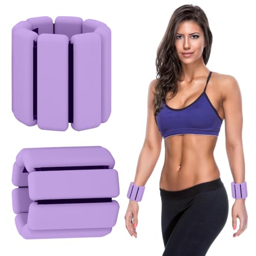 BNGXR Poids de Poignet Réglables, Poids pour et Chevilles, Sangles de Poignet Rose Silicone, Bracelet de Poids Portable, Lot de 2 (0,45 kg), pour Exercice Marche Jogging Yoga Aérobic (Violet)