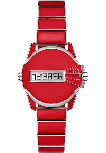 Diesel Master Chief Montre pour Homme, Mouvement Digital avec Bracelet en Silicone, Acier Inoxydable ou Cuir, Rouge et Noir, 44mm