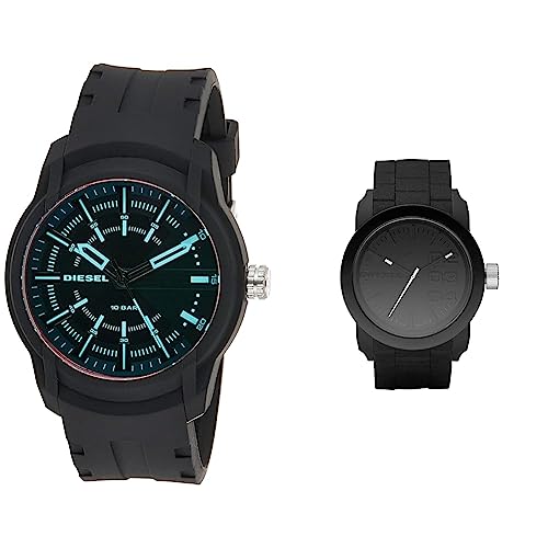 Diesel Montre pour Homme Armbar Silicone, Boîtier en Polycarbonate Noir de 45 mm avec Bracelet & Montre pour Homme Double Down S44, Boîtier en Polycarbonate Noir de 44 mm avec Bracelet