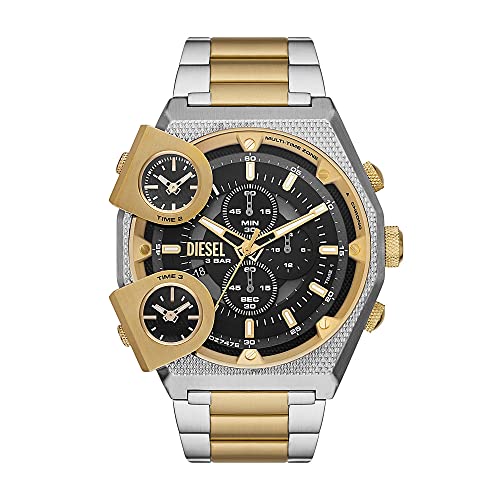 Diesel Montre pour homme, Split, mouvement chronographe, boîtier en acier inoxydable doré de 51 mm avec bracelet en acier inoxydable, DZ4590