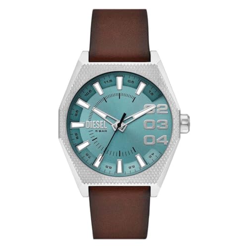 Diesel Montre pour homme Master Chief, mouvement à trois aiguilles, boîtier en acier inoxydable de 46 mm avec bracelet en cuir, DZ1206