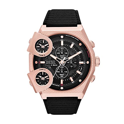 Diesel Montre pour Homme Mr. Daddy 2.0, Mouvement chronographe & Montre pour Homme Mega Chief, Mouvement Chronographe, Boîtier en Acier Inoxydable Noir de 51 mm avec Bracelet en Nylon Et Silicone
