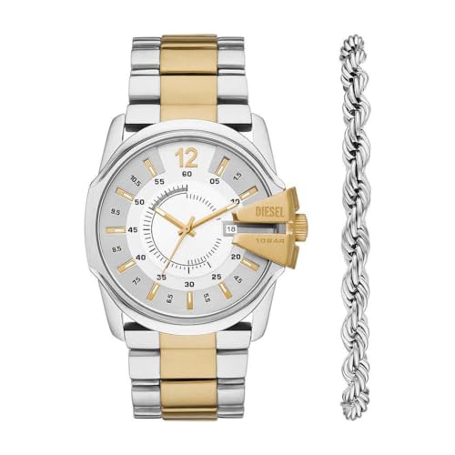 Diesel Montre pour homme Master Chief Mouvement Quartz/3 Aiguilles Date Boîtier 45mm avec bracelet en acier inoxydable DZ2182SET