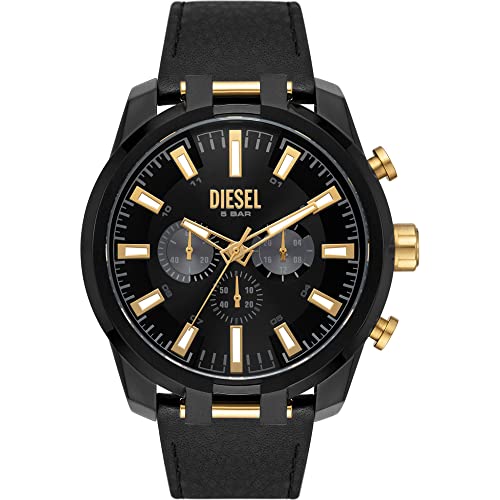 Diesel Montre pour Homme, Split, Mouvement Chronographe, Boîtier en Acier Inoxydable Multi de 51 mm avec Bracelet en Cuir, Dz4610