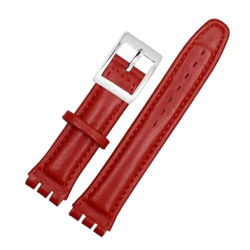 HTHRRFE Bracelet de Montre en Cuir Véritable Compatible avec SWATCH YCS YAS YGS IRONY Bracelet de Montre en Cuir de Vachette Hommes Femmes Boucle Pliante Bracelet Bande Marron 17mm19mm(Red silver,19mm