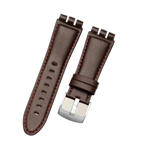 XTVKFWJAB Bracelet De Montre En Cuir Compatible Avec Swatch IRONY YOS440 449 448 401G, Accessoires De Montre, Bracelet De Montre For Homme De 23 Mm(B Dark brown,23mm silver clasp)