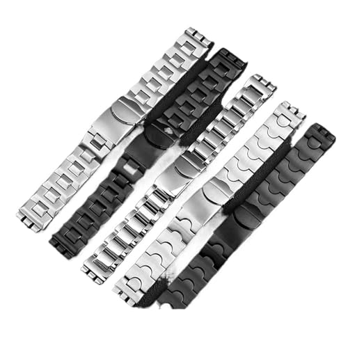MAKAZHZZRM Bracelet de Montre en Acier Inoxydable Massif 23 mm 316 adapté Fit for Bracelets de Montre Fit for Swatch YCS Yas YGS Irony en métal argenté et Noir(Black)