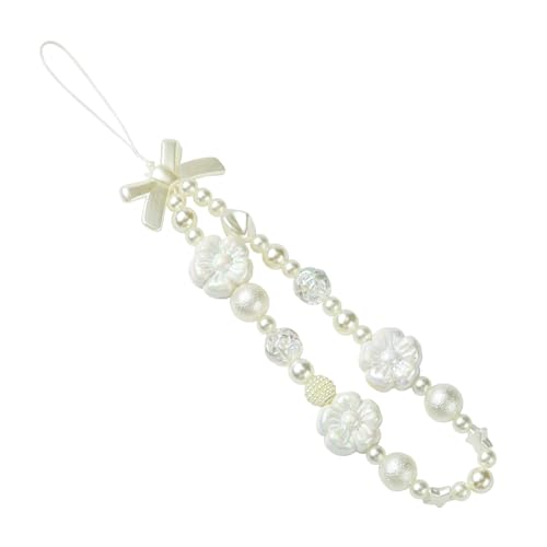 BEEFLYING Dragonnes de Téléphone Perlées Charms de Téléphone Y2K Adorables Sangle d'appareil photo Bracelet Cordon Pour Telephone Portable à Fleurs Blanches Esthétiques Porte-clés Lanyard