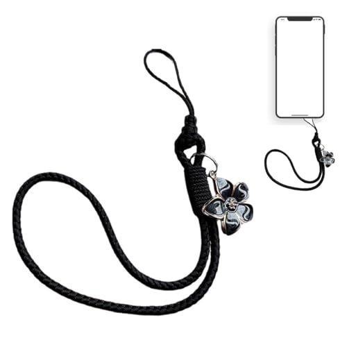 Pendentifs pour Téléphones, Bijoux de Telephone Portable, Bracelet Telephone, Dragonne de Téléphone, Charme de Téléphone pour Femmes Filles, Noir