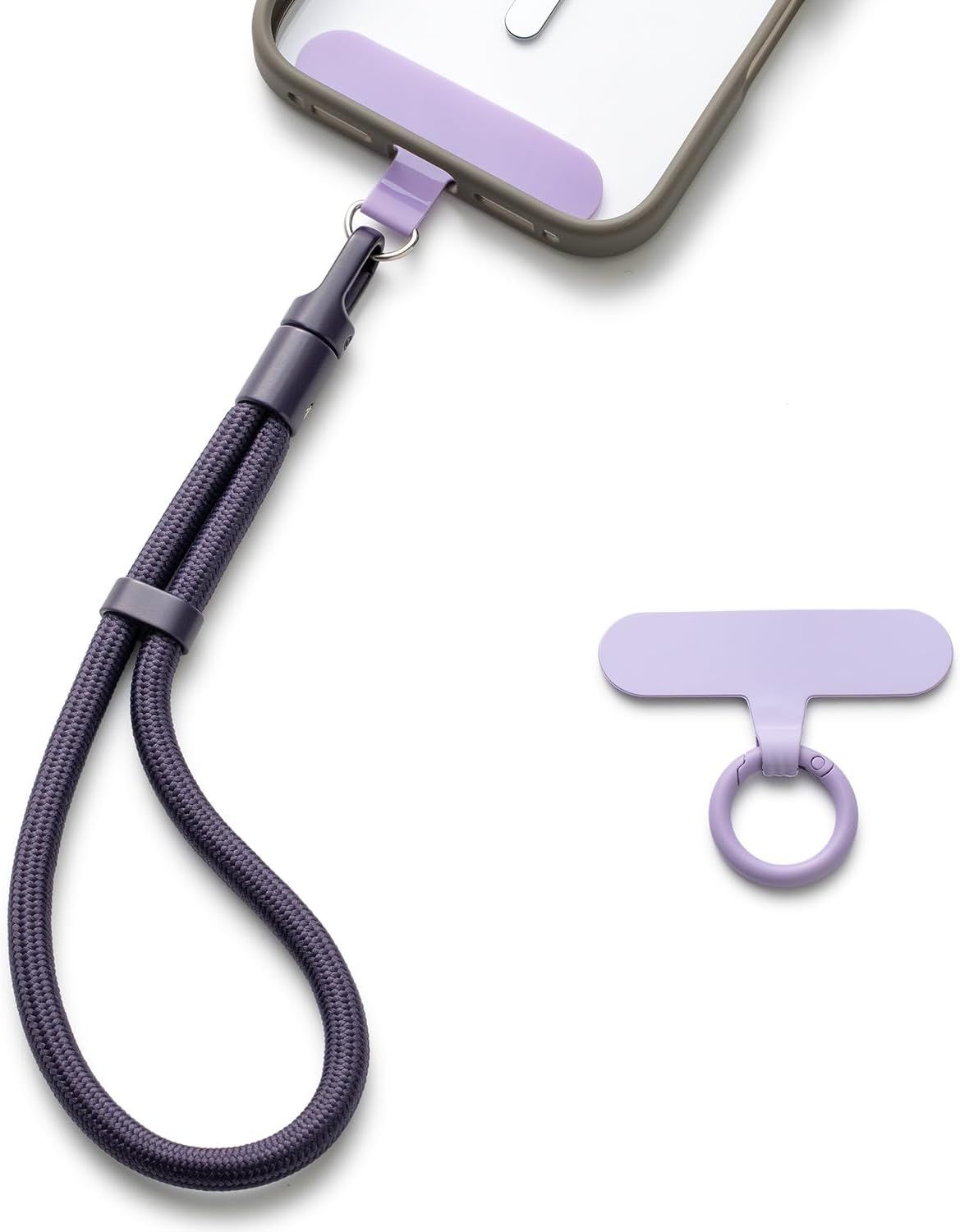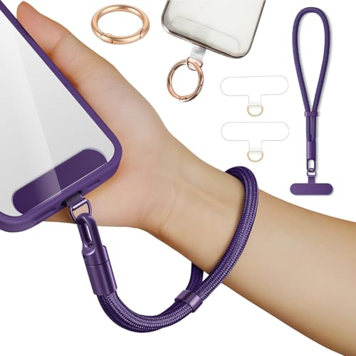 Casecond Chaîne de Téléphone Portable Lanyard Bande Bracelet Telephone Portable Cordon Courte Universelle Poignet Réglable Chaine Lanière avec 3 Patchs pour iPhone 16 Pro Max Porte-clés Clé Violet