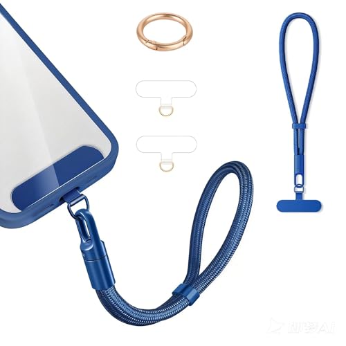 Casecond Chaîne de Téléphone Portable Lanyard Bande Bracelet Telephone Portable Cordon Courte Universelle Poignet Réglable Chaine Lanière avec 3 Patchs pour iPhone 16 Pro Max pour Porte-clés Clé Bleu