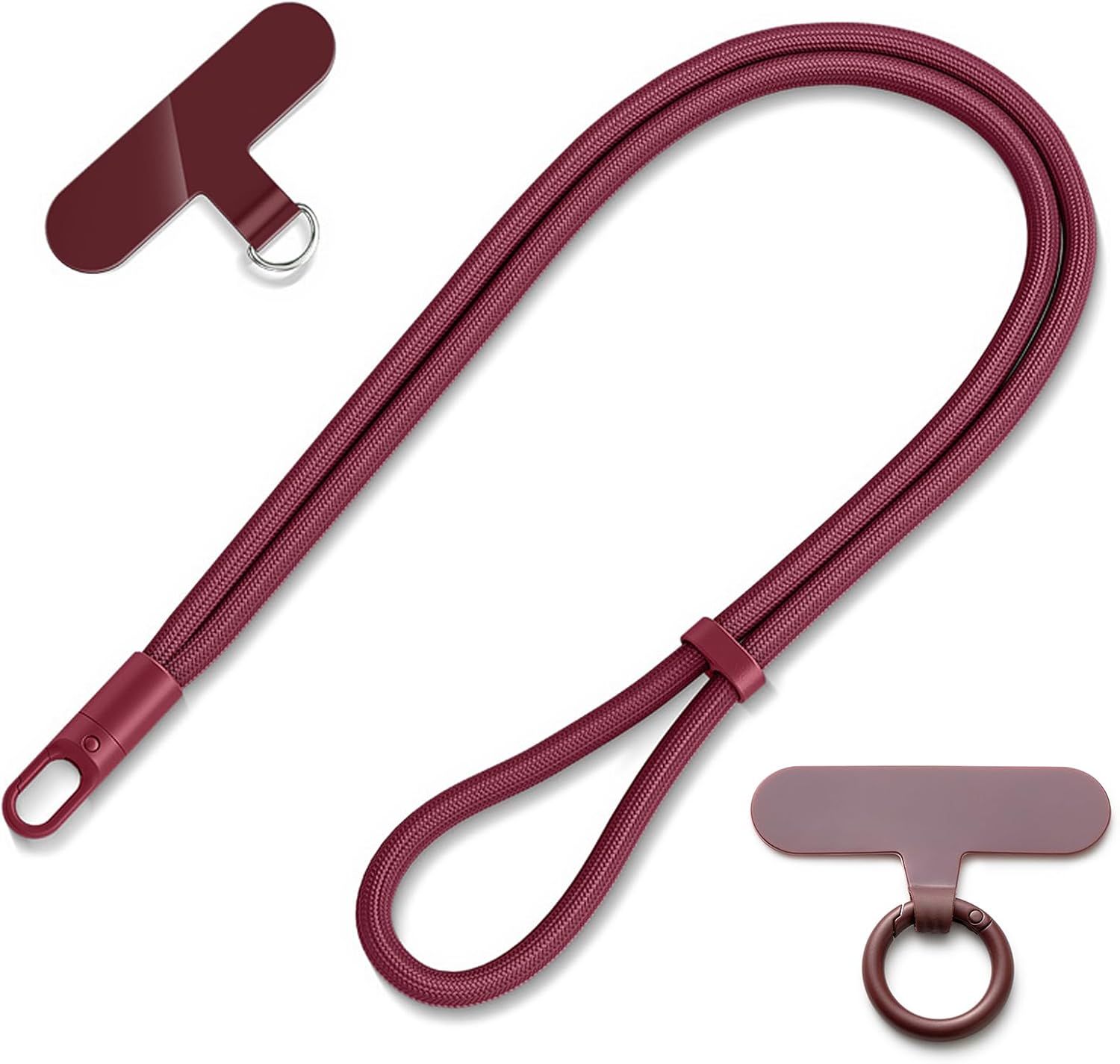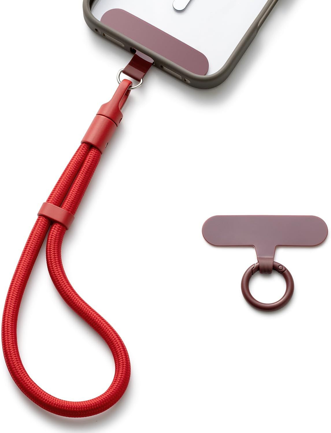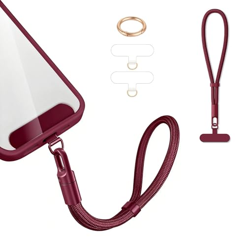 Casecond Chaîne de Téléphone Portable Lanyard Bande Bracelet Telephone Portable Cordon Courte Universelle Poignet Réglable Chaine Lanière avec 3 Patchs pour iPhone 16 Pro Max pour Porte-clés Clé Rouge